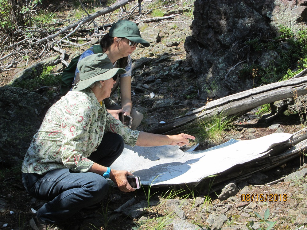 She began learning more about August Petrovich from her mother and from some of his army buddies. She had planned to visit the site with me last summer but California red tape in a home repair project prevented it. This year she made it here as she was passing thru to Iowa for a family reunion and her daughter Mariah (“they call the wind Mariah”- pronounced like that) flew out from California to join her for this hike. Mariah is the operations manager for her father’s tree service so she’s a hard-working outdoor girl and perfectly happy to be in the woods. (Mariah is wearing Duluth Trading Company Firehose overalls in this picture)